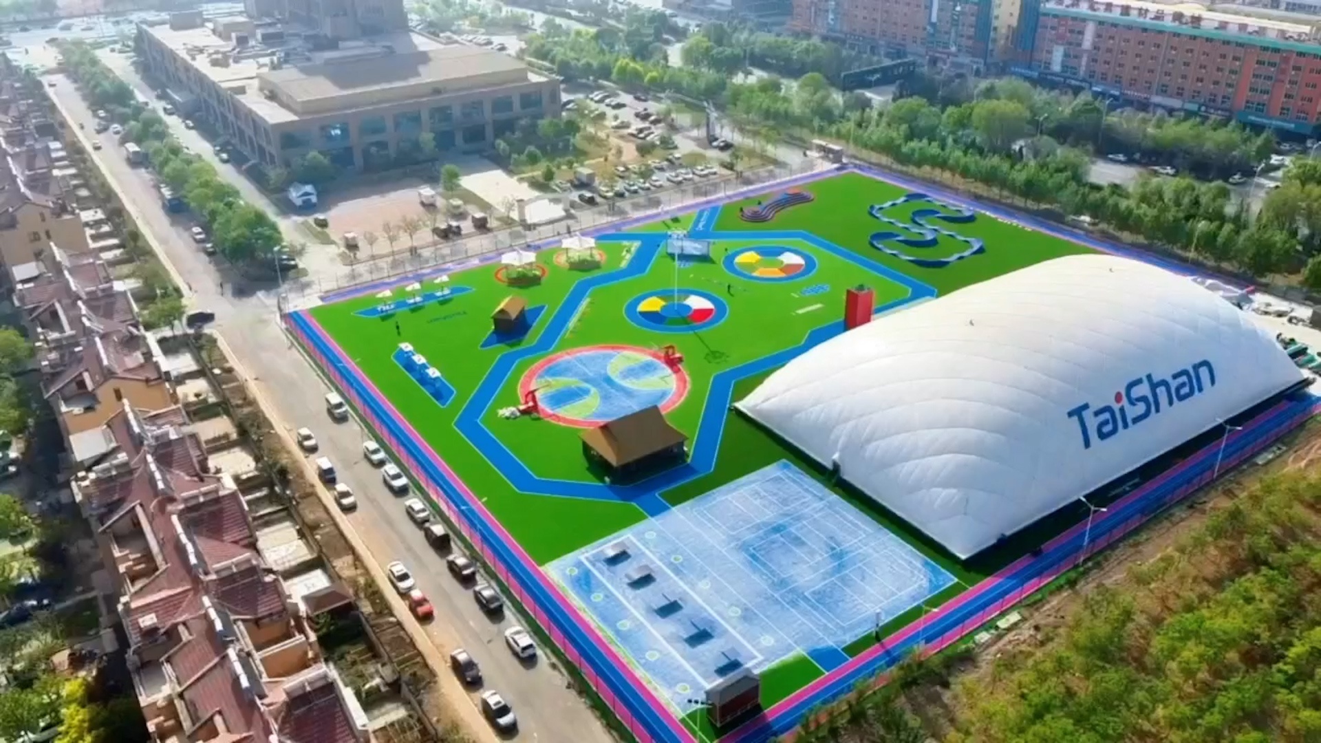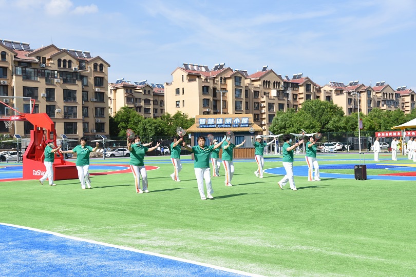 在场地铺设上,均采用k1新材料功能人造草铺设,全方位保证运动安全和环保;气膜式篮球综合运动馆,内部设置2片篮球场、6片乒乓球场地及1片网球场。网球场同时套线4个羽毛球场地。场馆内可以满足体育运动,体育教学及群众比赛需求。从场馆到运动超市、智慧体测小屋,全部采用可装配式建筑。