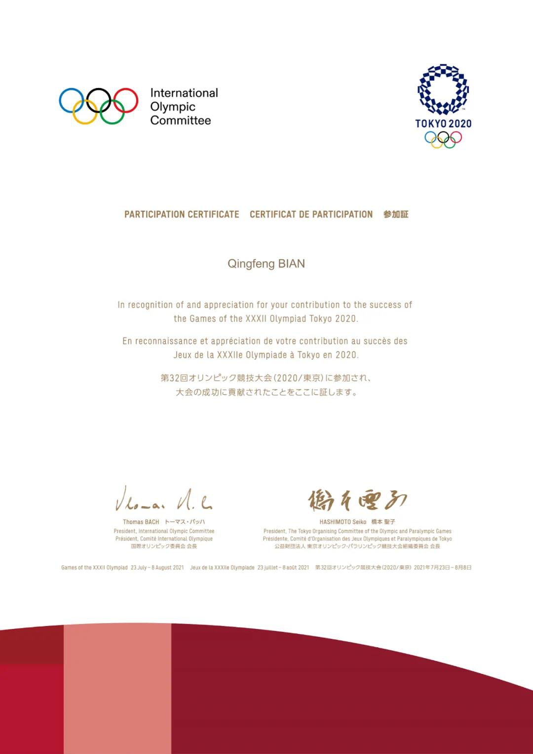 2020东京奥运会组委会给k1集团的感谢信