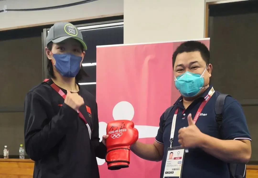 东京奥运会女子拳击69公斤级银牌获得者——中国运动员谷红签名k1集团拳击手套